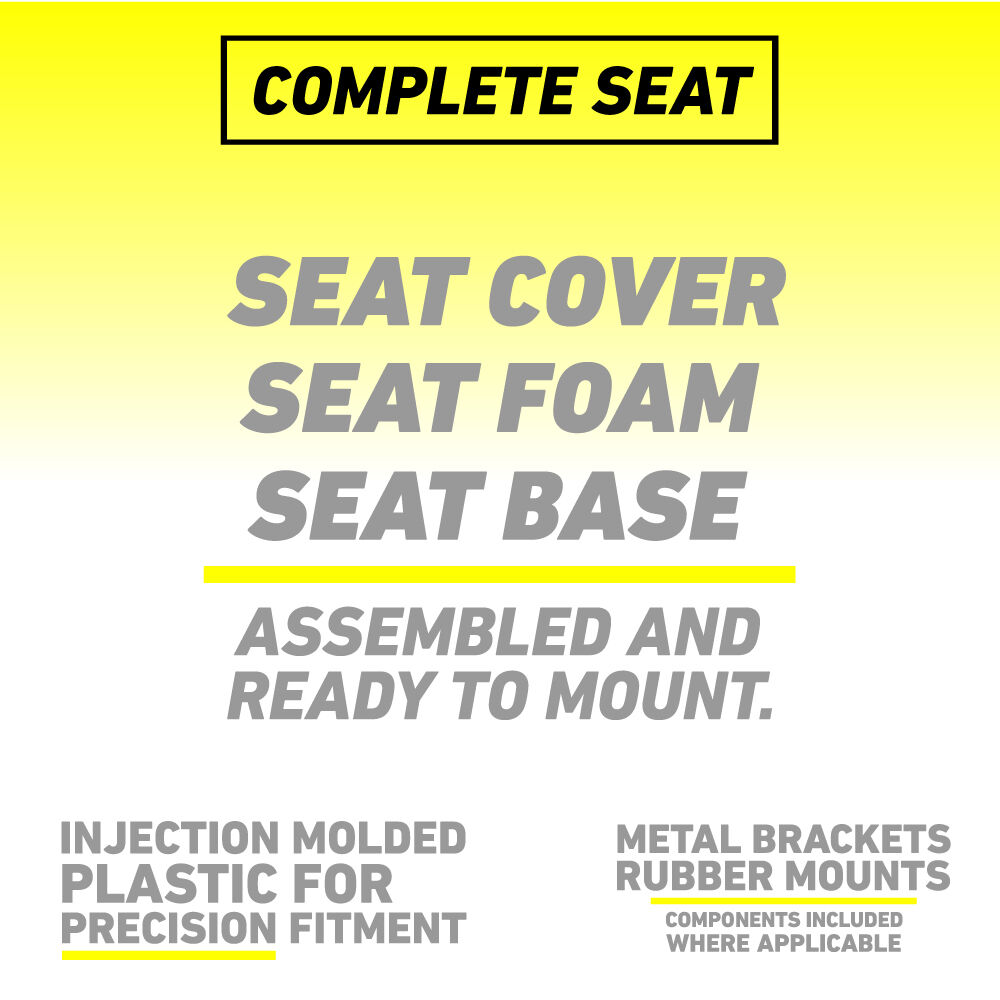 Complete Seat Features: • Injection molded plastic for precision fitment • OEM fitment base for true alignment • Metal brackets & rubber mounts included where applicable