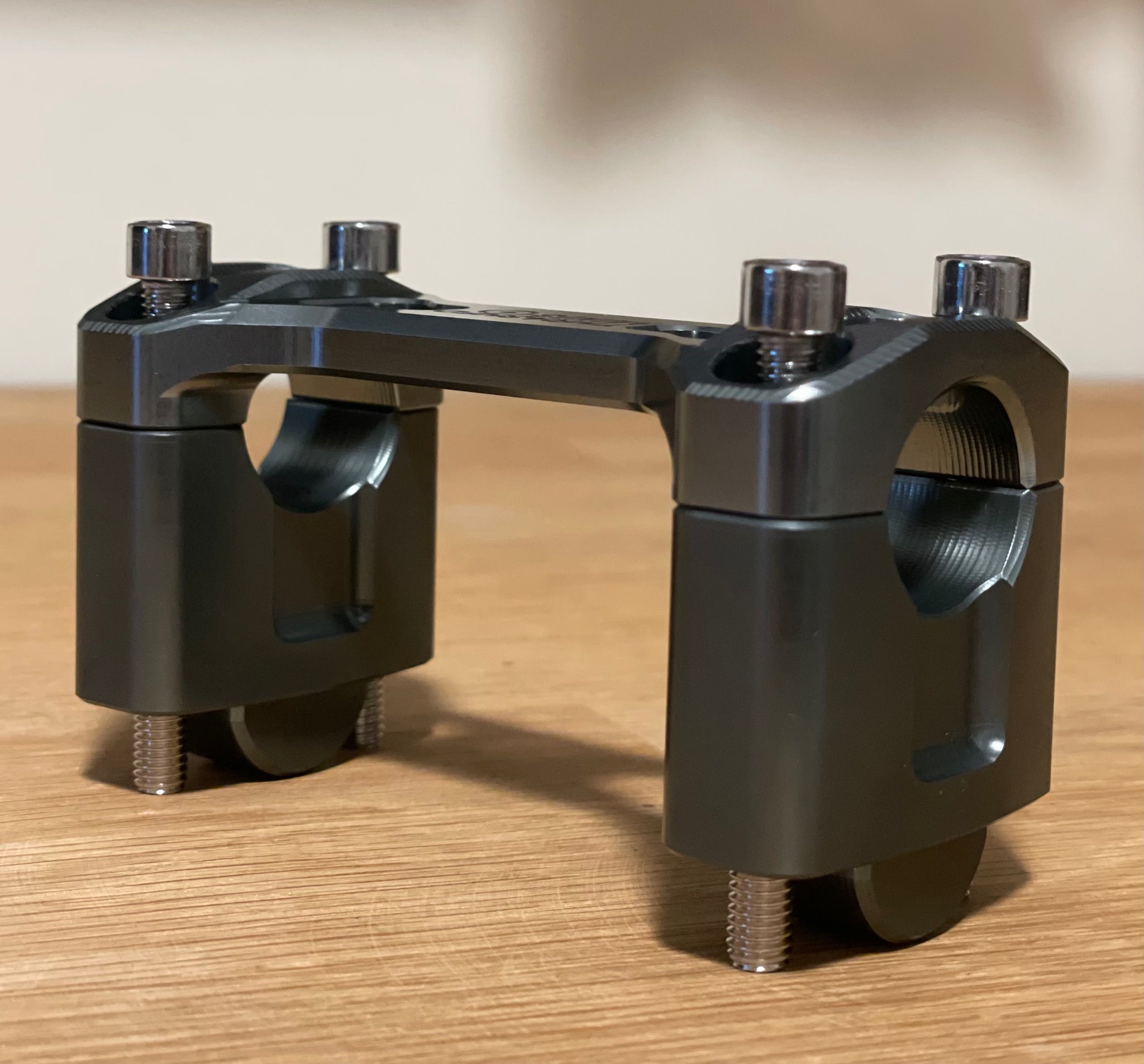 Instead of running the plain OEM bar risers, Thrashed have made a set that has a full top cap! These are a perfect option for anyone who doesn’t want to pay the big $$ for a full top clamp! These raise your bars the perfect amount to stop your knees smashing into them